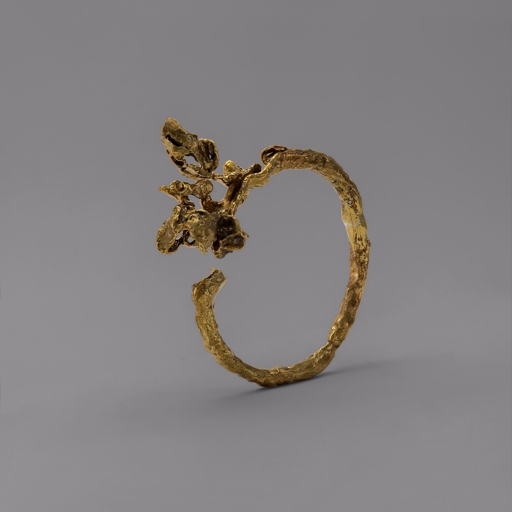 Inspired by the organic curves of a blooming flower, the Anthos buckle translates botanical softness into a bold, sculptural form. Handmade in solid bronze, its warm tone and textured surface highlight the raw beauty of the material, creating a piece that feels both natural and architectural. Designed as a functional object with an artistic presence, it adds character and individuality to everyday wear.