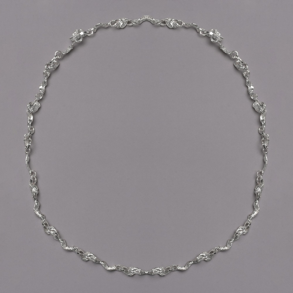 This elegant necklace features handcrafted leaf-inspired links, made from solid 925 sterling silver. Handmade in Greece, it captures the delicate beauty of nature, blending organic design with timeless sophistication. Perfect for layering or wearing solo to add a touch of natural charm to any outfit.