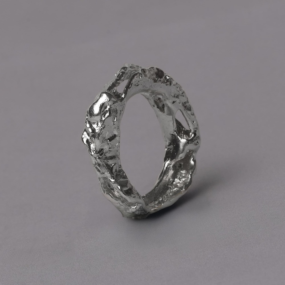 This handmade band ring features a subtle nature-inspired texture, crafted from solid 925 sterling silver. Its polished finish adds a touch of organic elegance, perfect for everyday wear or stacking with other rings. Available in multiple sizes; please inquire for size options.
