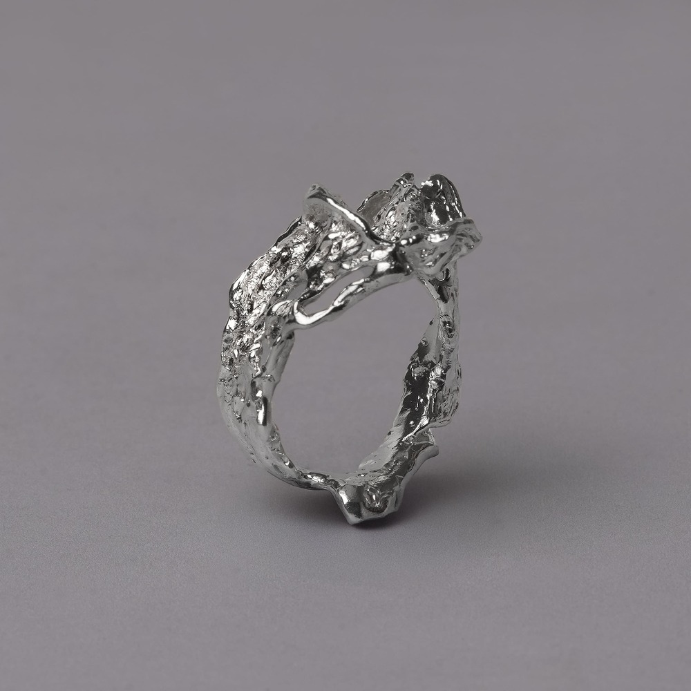 Drawing inspiration from the raw forms of nature, this handmade band ring features subtle organic texture and a timeless silhouette. Crafted from solid 925 sterling silver, it is a refined yet earthy piece that complements any style. Available in all sizes; please inquire for yours.
